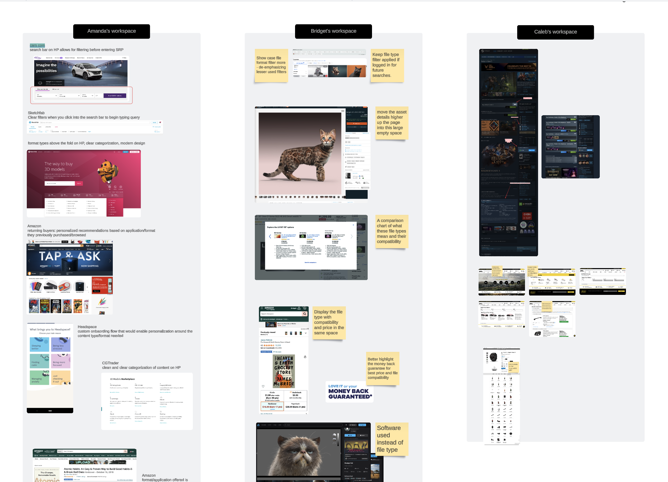 I asked the team to find examples of other products that are solving a similar problem (not limited to the 3D space). We found a broad range of inspiration, much of which focused on search and discovery being a key aspect of determining compatible formats for the user.